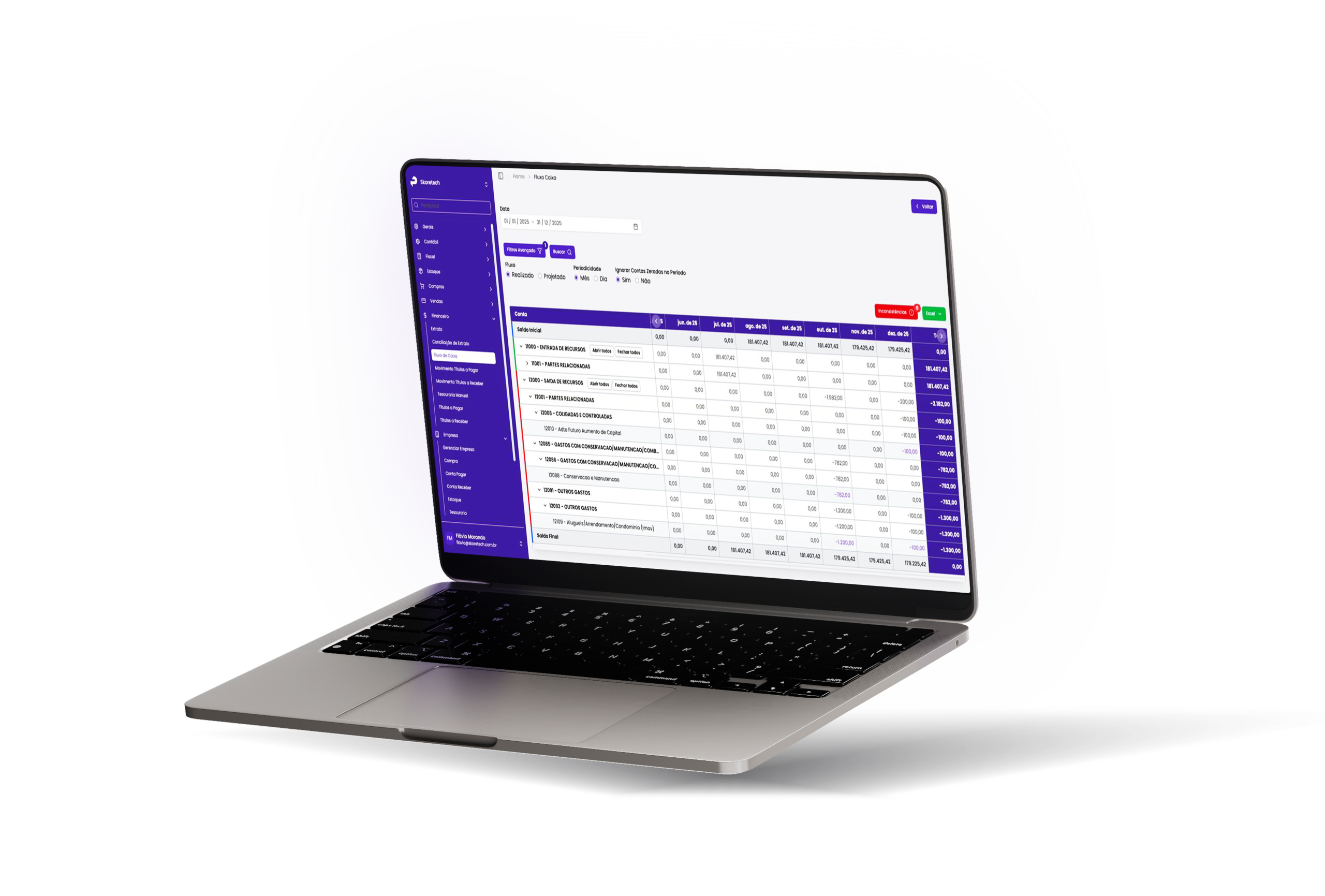 Acompanhe entradas e saídas, visualize o fluxo de caixa realizado e projetado e tome decisões com mais segurança, usando conceitos de grandes empresas aplicados à sua realidade.